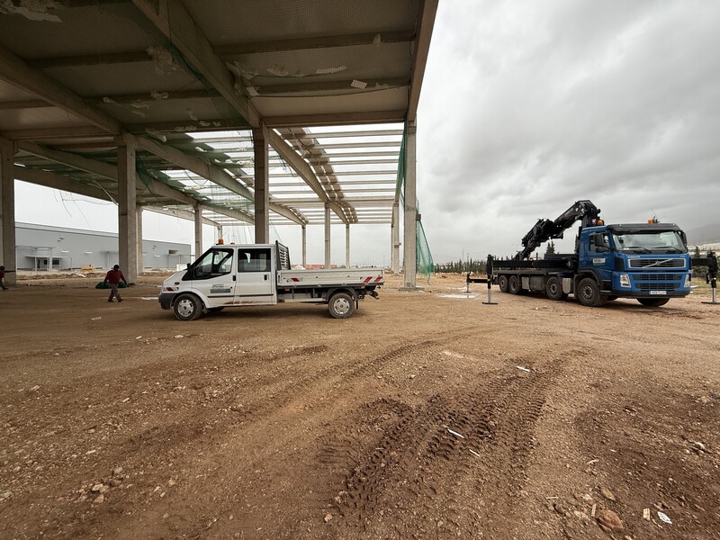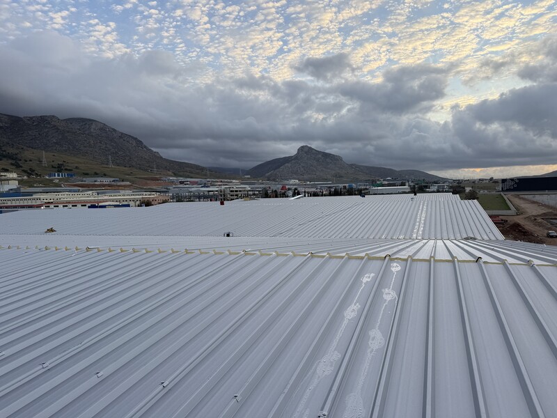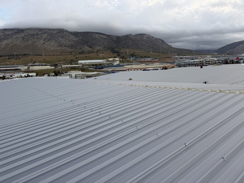 Αποθήκες Σκλαβενίτη 2026 έργο σε εξέλιξη Εργασία: Τοποθέτηση πάνελ οροφής πολυουρεθάνης 80mm Ποσότητα: 5000τμ2